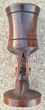 "Wooden clubs are carved from a single piece of heavy grained wood. The head of the club is usually formed by a knot in the wood. The handle of the weapon can be decorated with copper or brass wire and in some cases the scrotum of a large antelope or ox is shrunk over the clubhead."