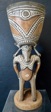 "The many peoples of the Sepik region accompany their singing and dancing during ceremonies and rituals with various musical instruments, heightening the dramatic effect of the performances. Although slit gongs and sacred flutes were often kept from public view, men played hand drums during funerals, at the dedication of new clan houses, and when new canoes were launched."