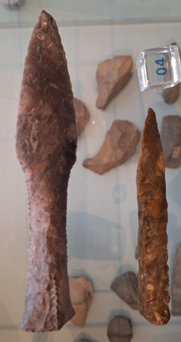 Flakes of flint have been struck off these daggers, to give the impression that the handle is made of leather that has been sewn together.
